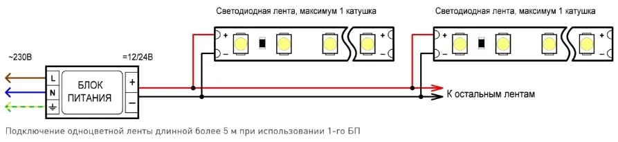 - Схемы подключения светодиодных лент одноцветных
