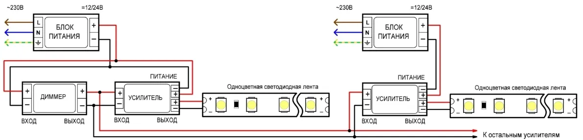 Схемы подключения светодиодной ленты