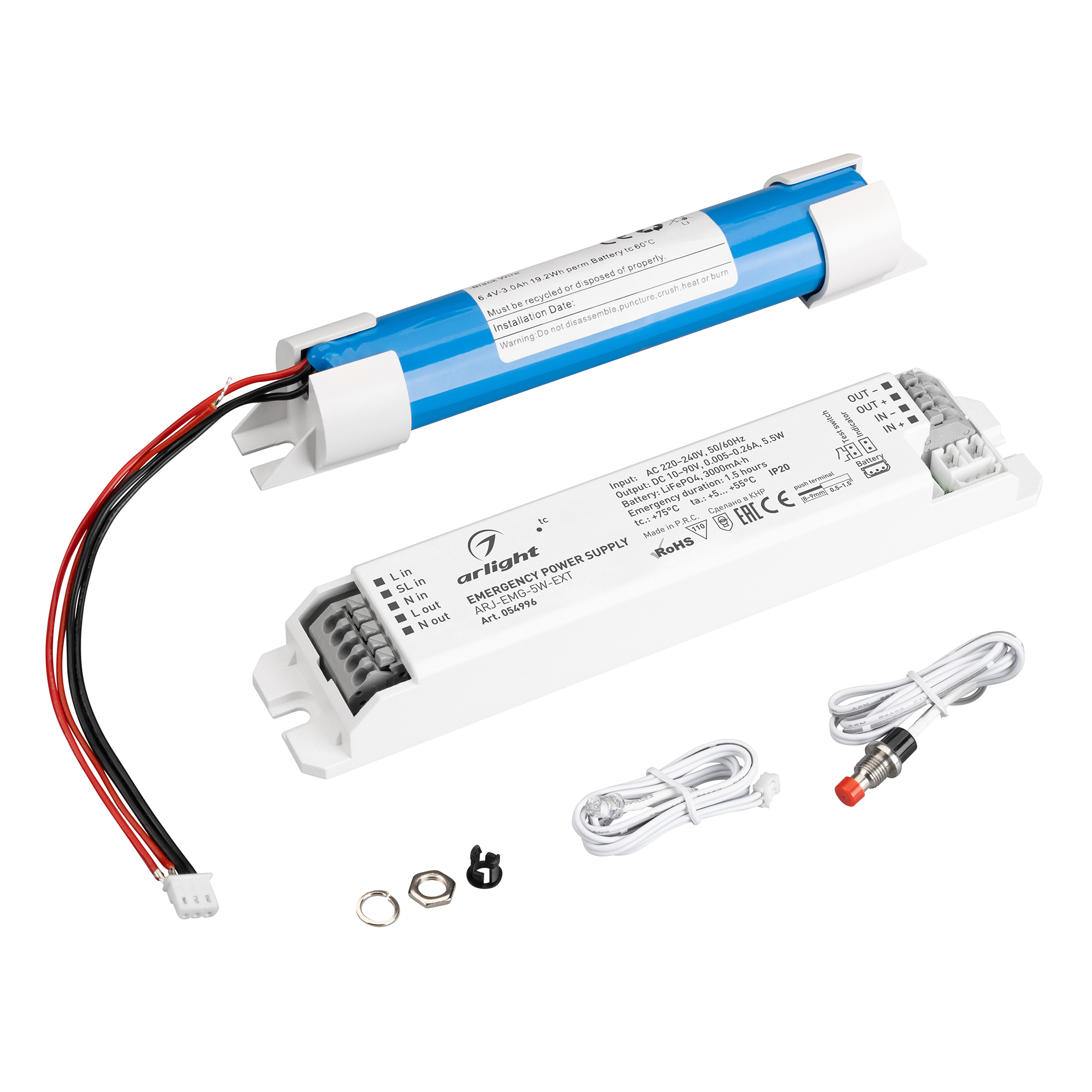 Блок аварийного питания ARJ-EMG-5W-EXT (10-90V, 1.5H, LiFePO4) (Arlight, IP20 Пластик, 3 года) 054996 в Новосибирске