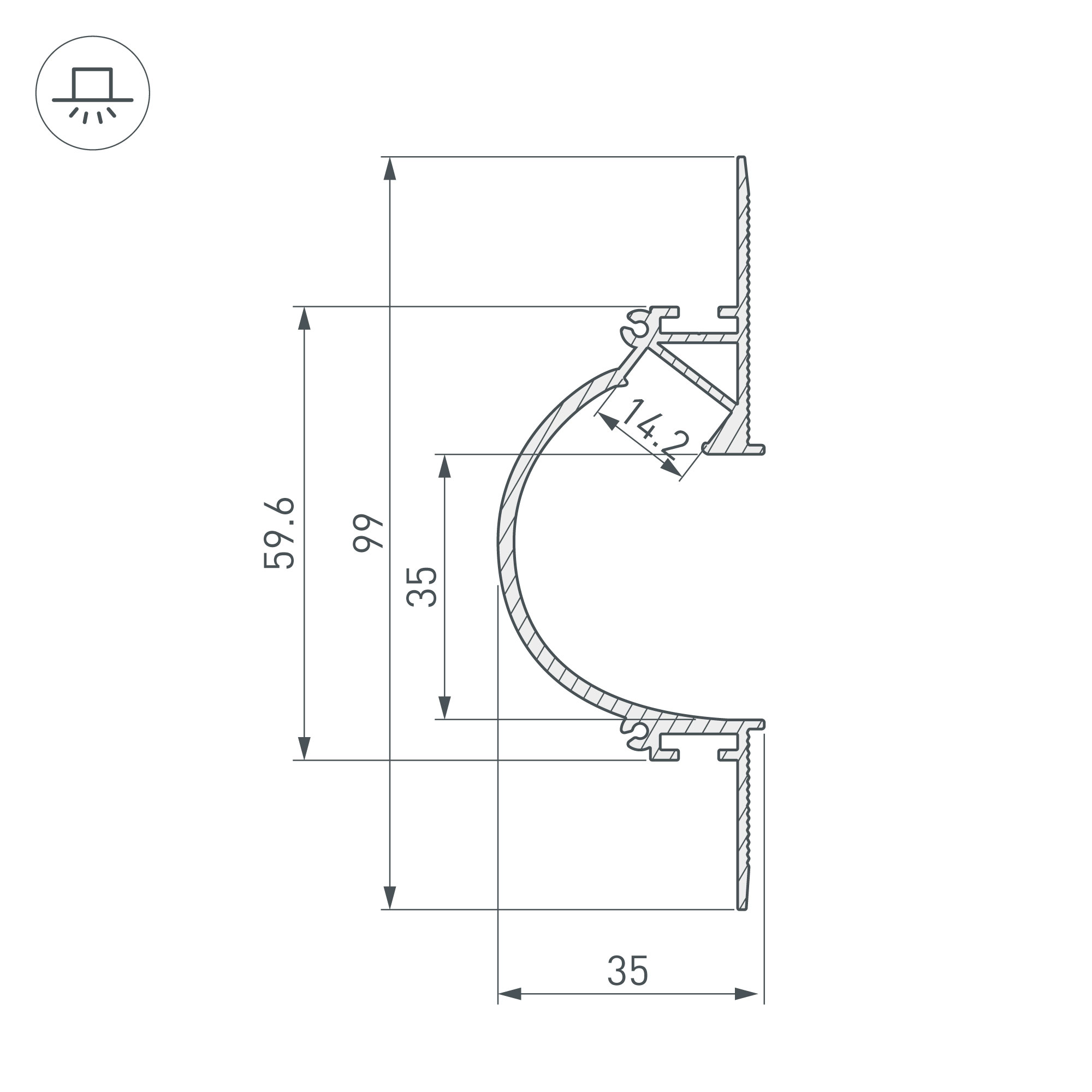 Алюминиевый профиль для светодиодных лент и линеек с боковым свечением. Цвет-белый RAL9003 (порошковая окраска). Габаритные размеры (L×W×H): 2000x99x35 мм. Ширина площадки для ленты 14,2 мм. Заглушки и другие аксессуары приобретаются отдельно. Цена за 1 метр.